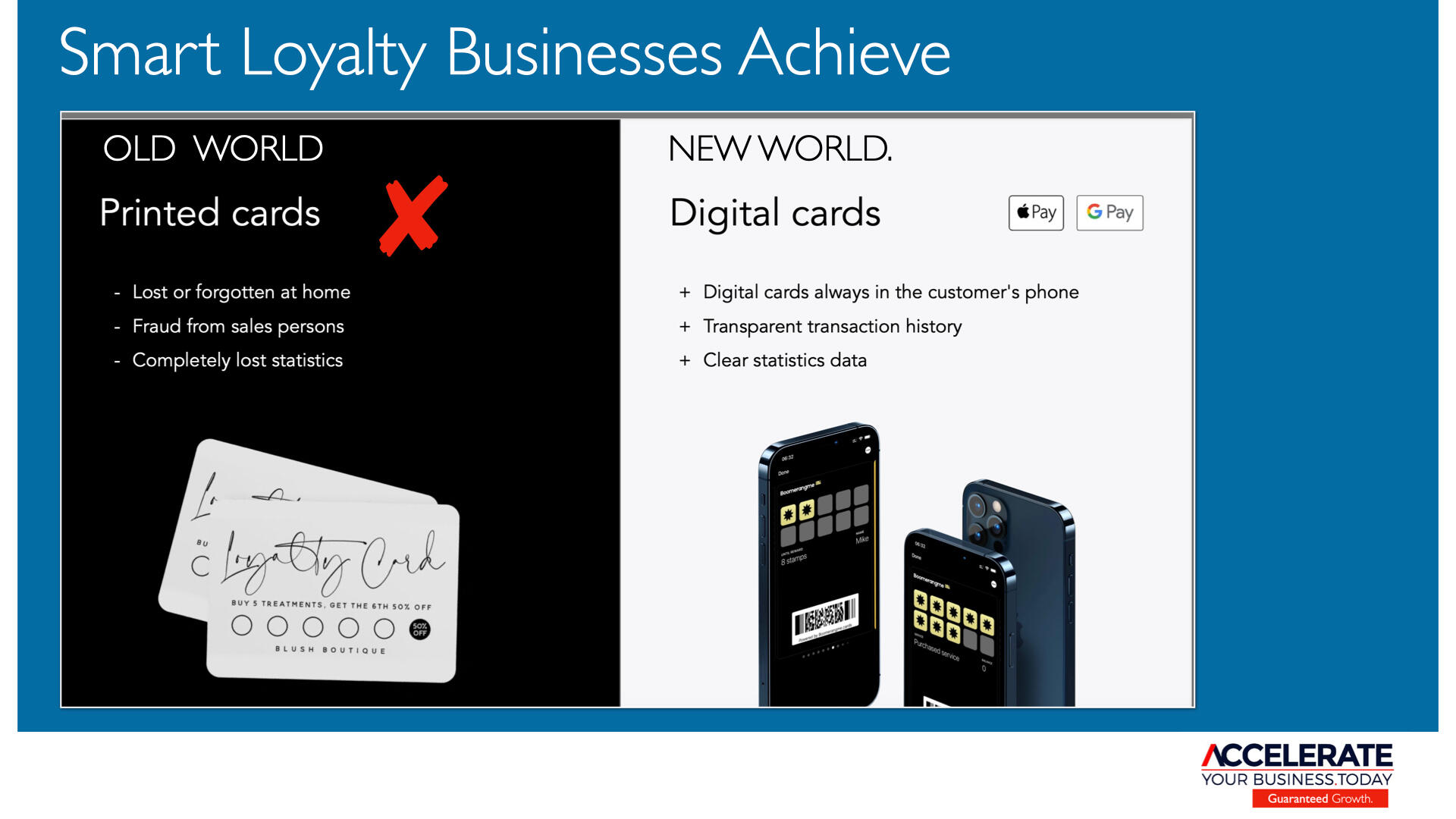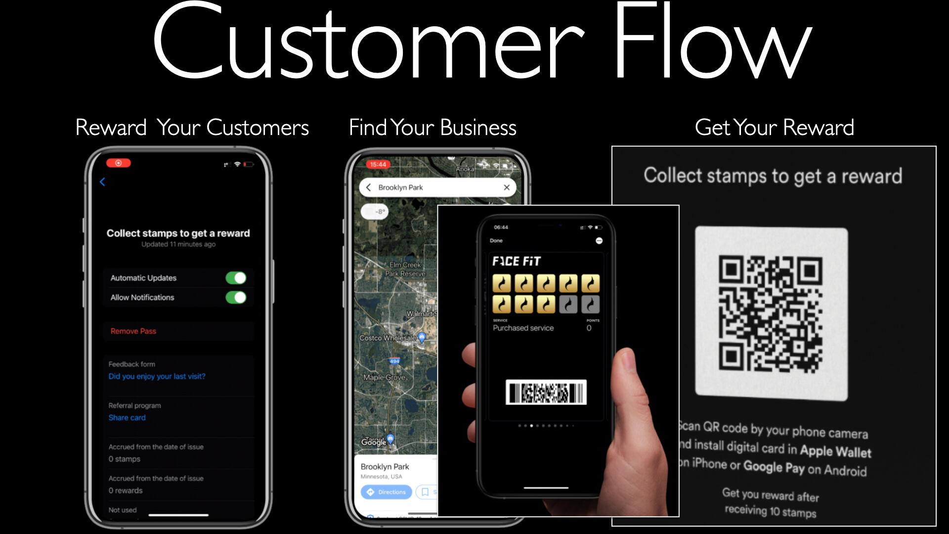 Customers love it because your custom-branded loyalty card is immediately inside their Apple and Google (Android) smartphones -all the time,
